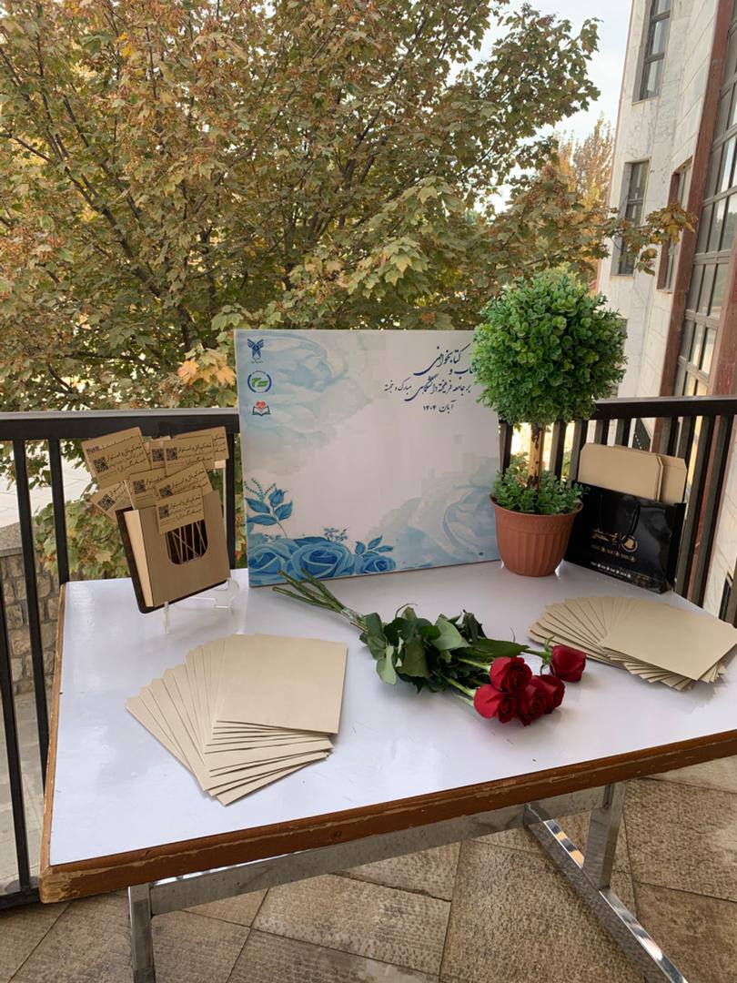 برای آفرینش فضایی گرم و صمیمی در این ایام، میز خوشامدگویی در ورودی کتابخانه برپا شد و تابلوی یادبود سپاس از کتابداران پیش چشم مراجعان قرار گرفت؛ دانشجویان، همکاران و اعضای هیأت علمی پیامهای محبتآمیز خود را بر آن تابلو نوشتند و با امضایی کوچک، یادگاری بزرگ برجای گذاشتند. پس از ثبت پیام، هر فرد صفحهای از «کتاب یکصفحهای» را هدیه میگرفت؛ صفحهای الهامبخش، که تلنگری روشن بر روزشان میزد.